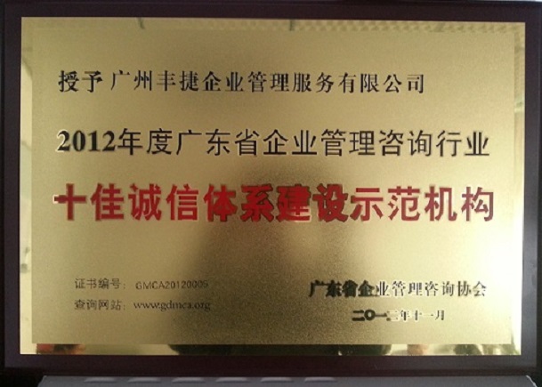 • 2012年度广东省企业管理咨询协会十佳诚信体系建设示范机构